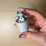- Playful trash panda design: A cheeky raccoon popping from a bin adds humour and charm.