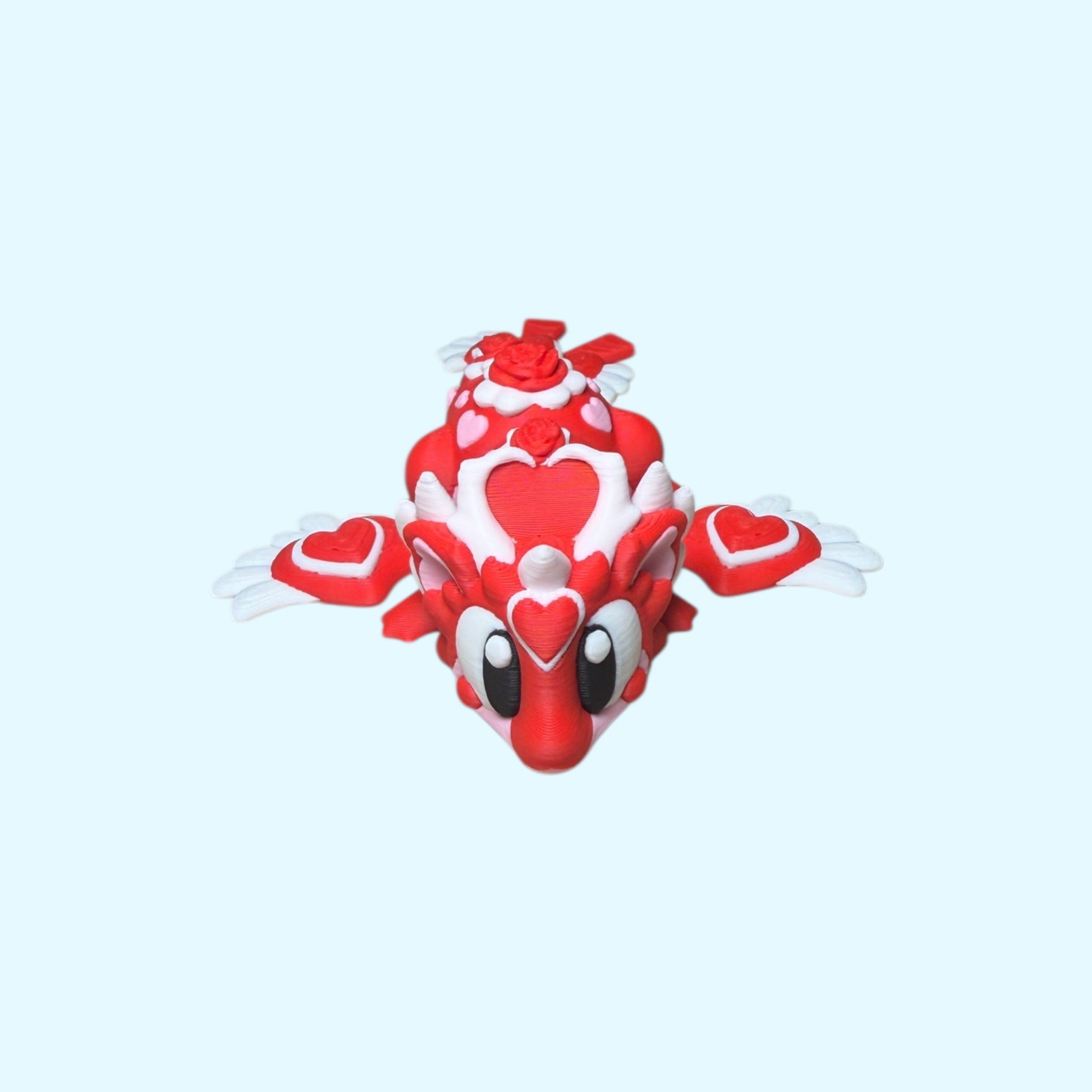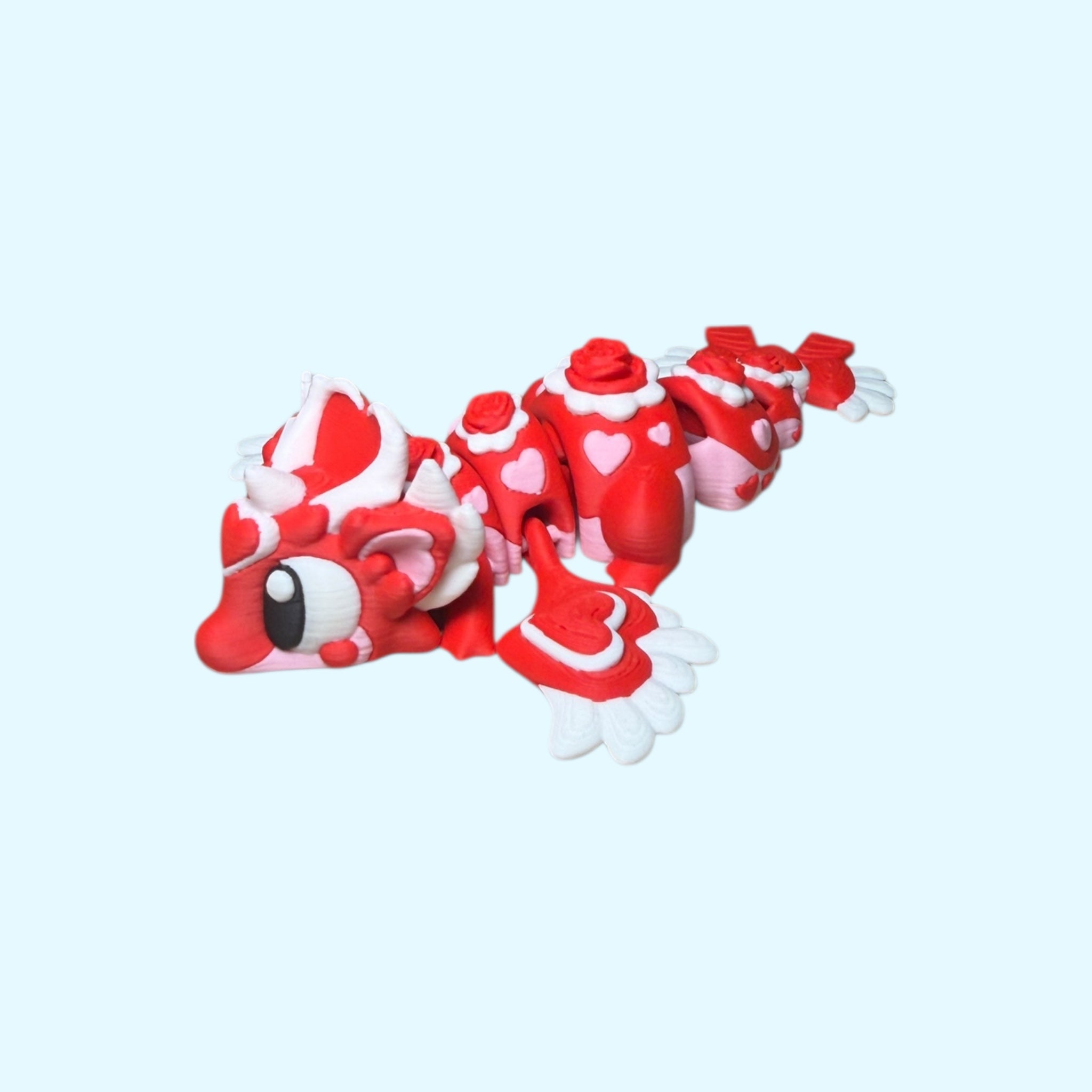 Meet the Cupid Mini Dragon – a love-filled little companion covered in hearts, roses, bows and wings. Designed to be irresistibly cute and satisfyingly wiggly, this articulated mini dragon is perfect for Valentine’s Day gifting, desk fidgeting, or keeping close when you need a little comfort and joy.