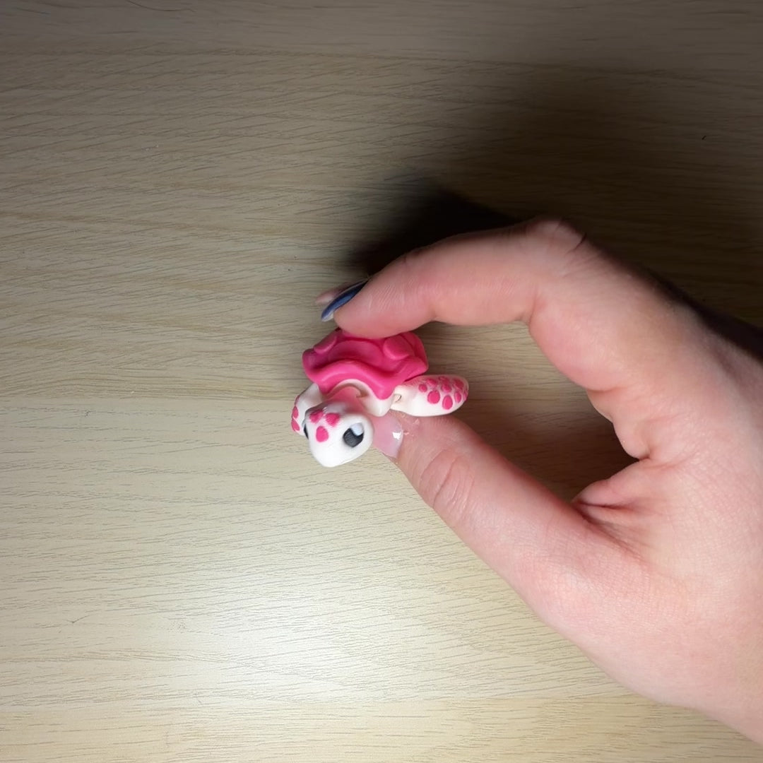 With its bright pink shell, spotted flippers, and friendly face, this turtle is full of charm. Perfect for pockets, pencil cases, or small hands, it’s a lovely choice for moments when you need something comforting, grounding, or quietly playful.